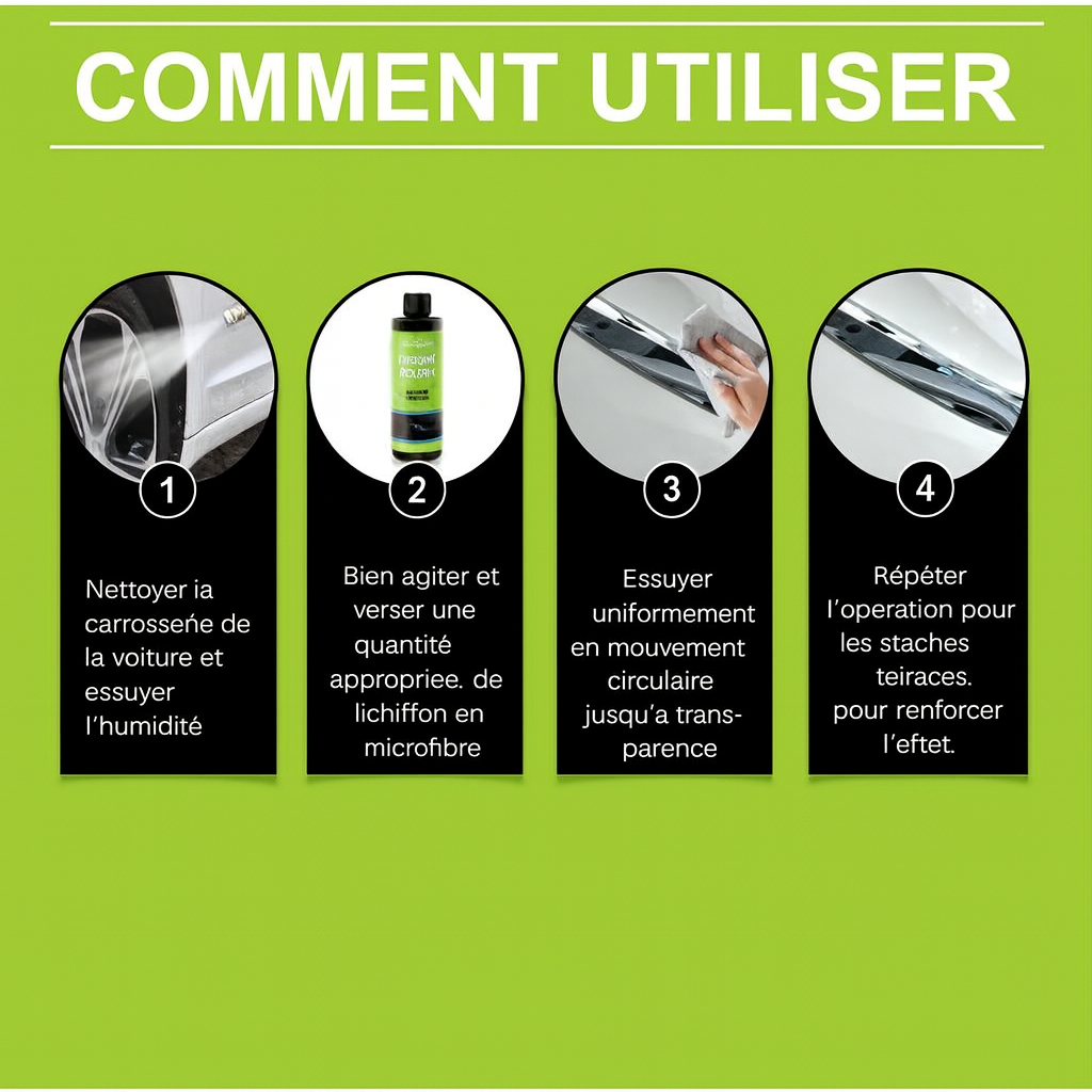 Effet immédiat : brillance instantanée dès l’essuyage, sans besoin d’équipement professionnel.